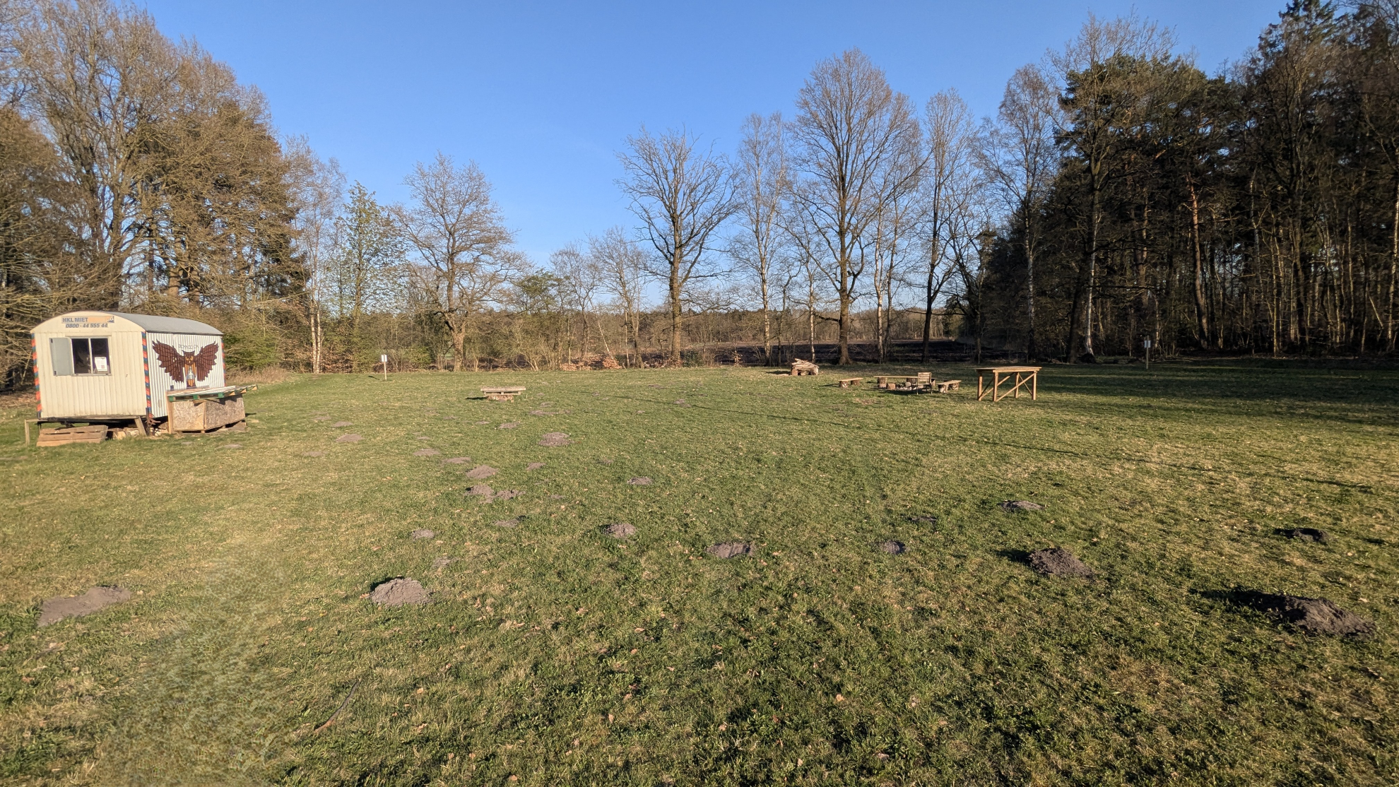 Seit März 2013 haben wir einen eigenen Platz, den sogenannten Mellon. Der Name heißt übersetzt "Freund" und betont die Wichtigkeit von Freundschaften. Hier am Regenrückhaltebecken in der Talstraße haben wir einen eigenen Bauwagen, eine Feuerstelle und viel Platz zum Austoben.